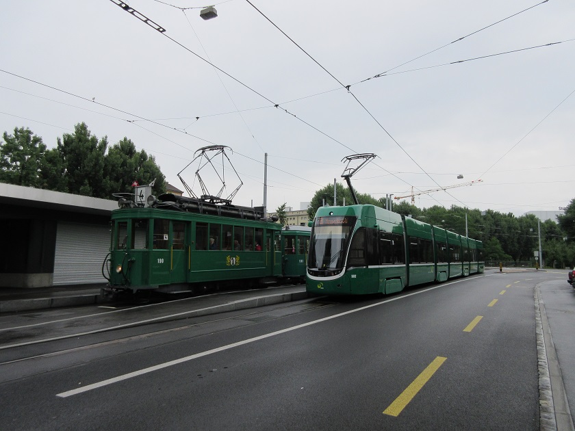 in Kleinhüningen neben dem Flexity 5002 am 21.06.2015